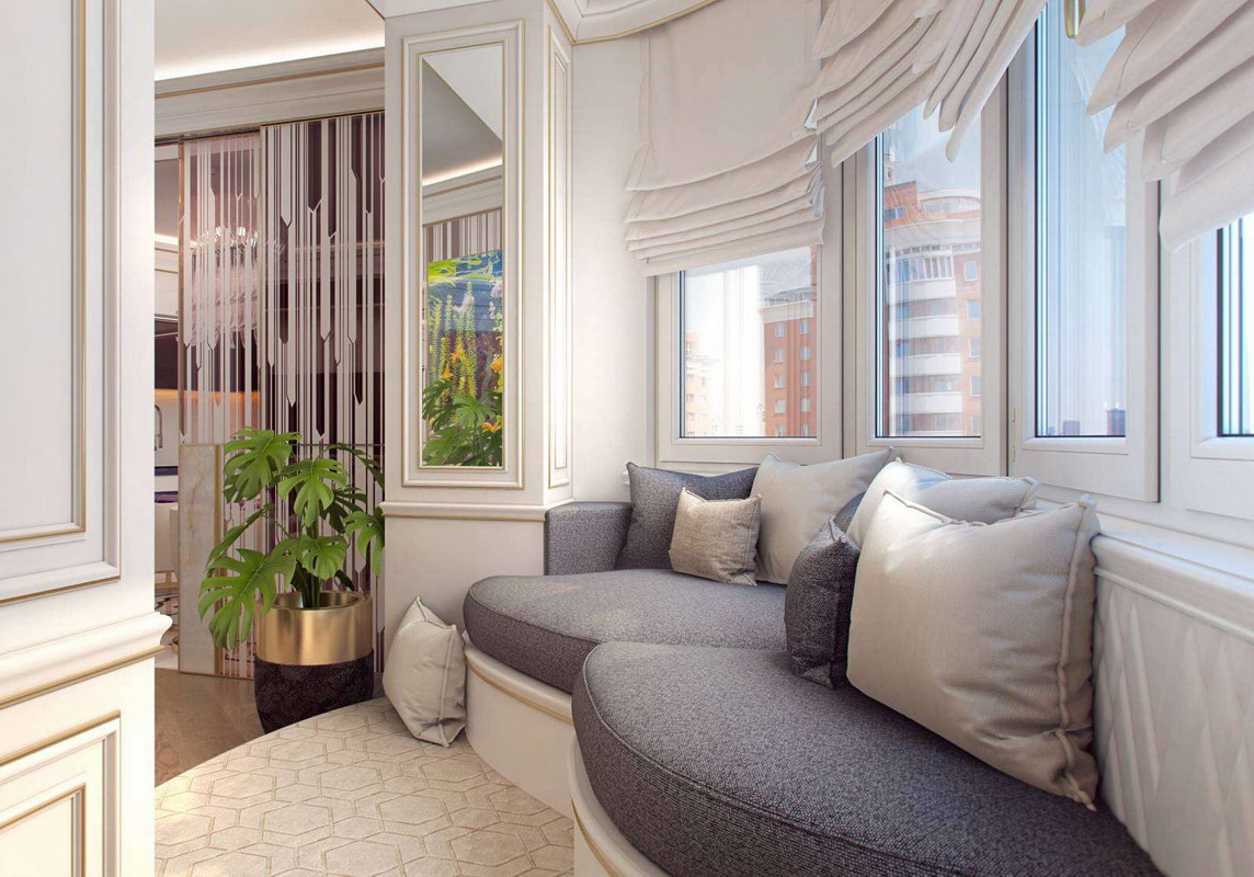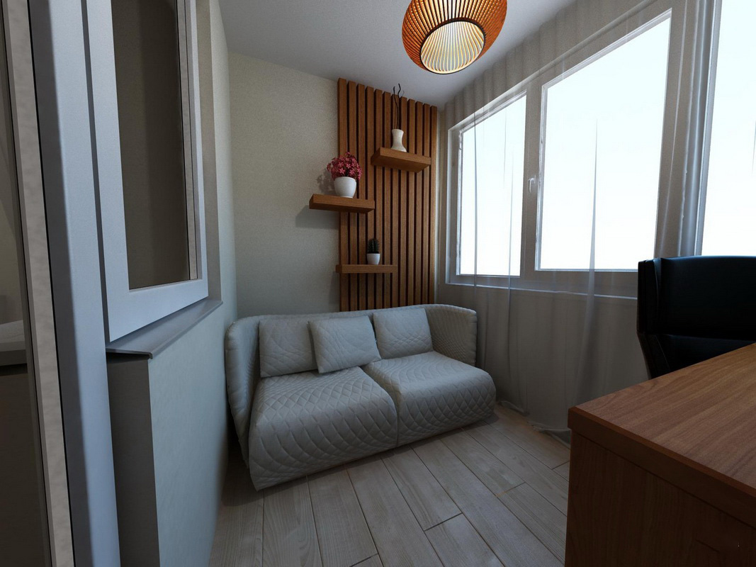 If you have a balcony or a loggia, be sure to consider combining them with a bedroom or kitchen (usually balconies are located in these parts). If the loggia is relatively small in size, then the ideal solution is to equip a coffee table with small chairs here.Instead of the disassembled partition, put wide sliding doors, and directly on the street, organize a balcony with a partition made of ornate, forged metal painted in black or bright color. Having planted loaches or girl's grapes, let them go from the partition to the ceiling itself. So, on a sunny hot day it will be much nicer to indulge in pleasure, relaxation with a cup of cold cocktail.