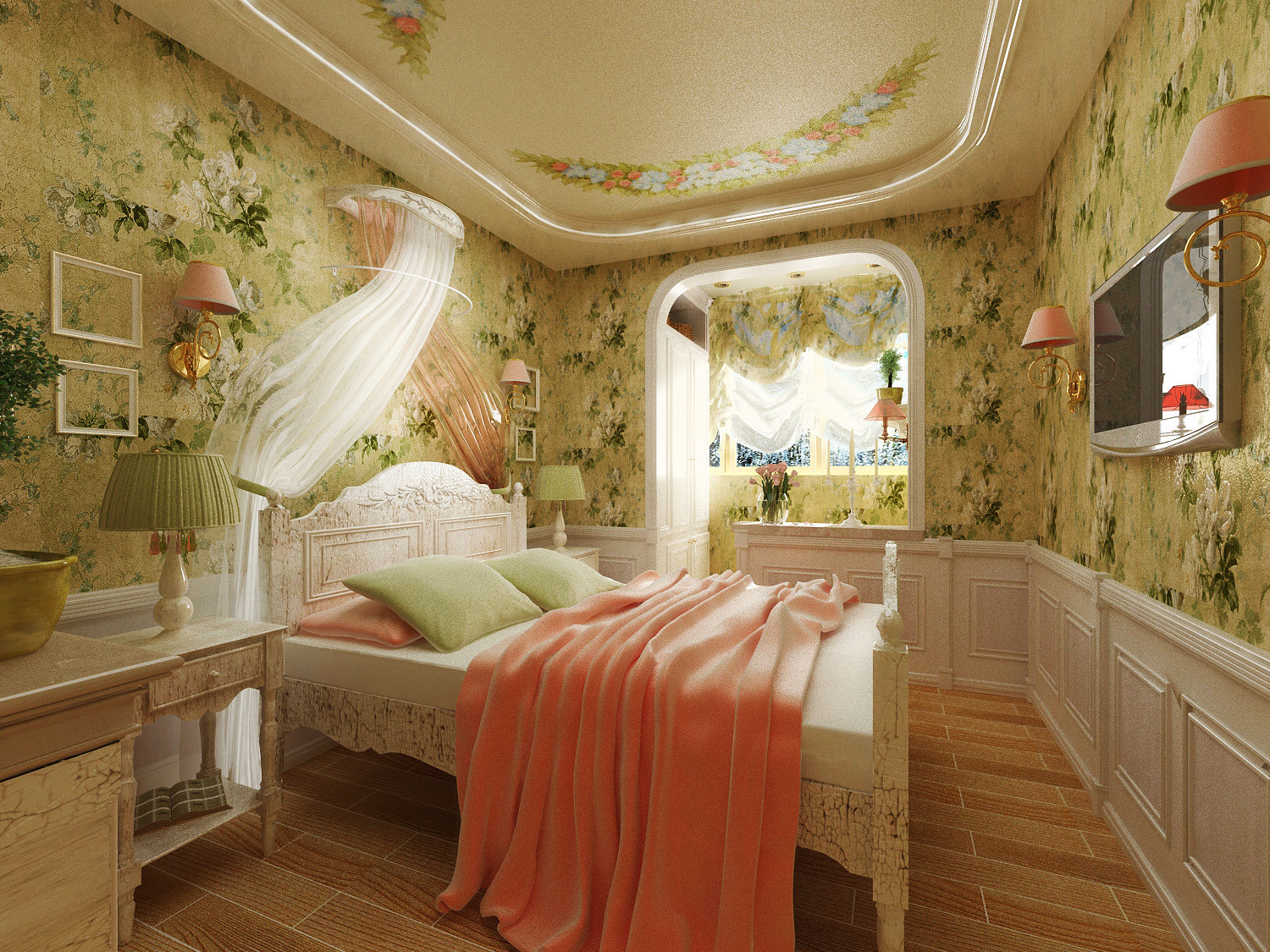Cold light in the bedroom is not needed, give preference to lamps with soft diffused light