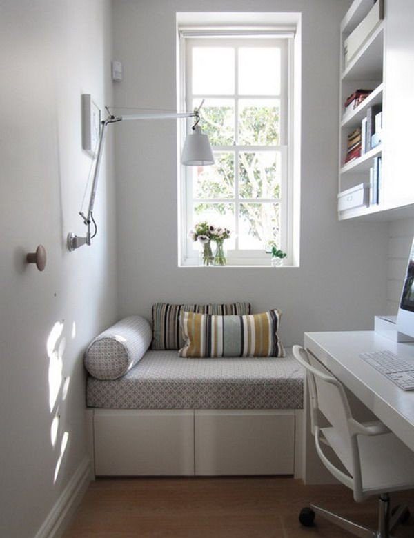 - The use of functional furniture. For example, take a folding sofa. After a night's sleep, just remove the folding part.
