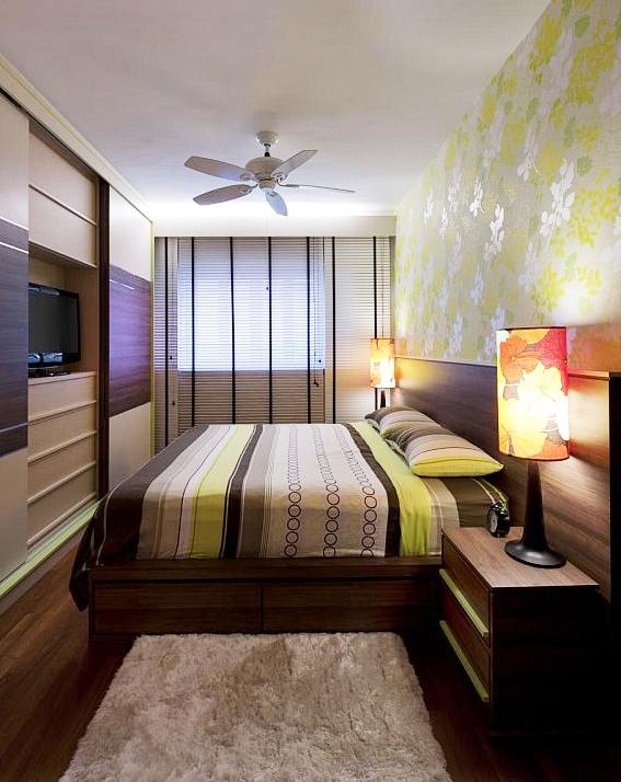 The design of a long narrow room must be given a square shape. Much more comfortable is in the bedroom of the right size. To do this, you need to equip the bedroom, namely short walls, with horizontal elements of interior decoration. They use wall-paper with drawings, patterns and patterns. Also suitable for opening the shelf.