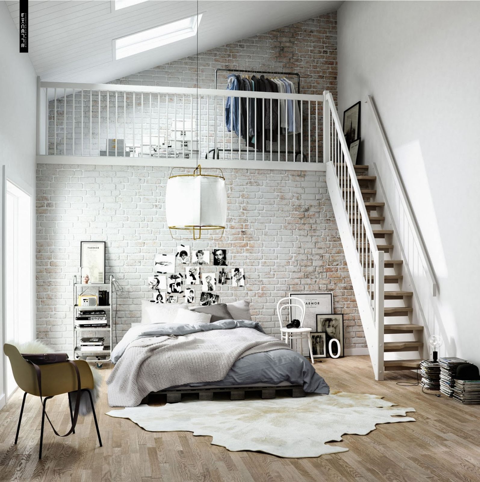 A staircase to the mezzanine with a bed can be made directly on the bookshelves.