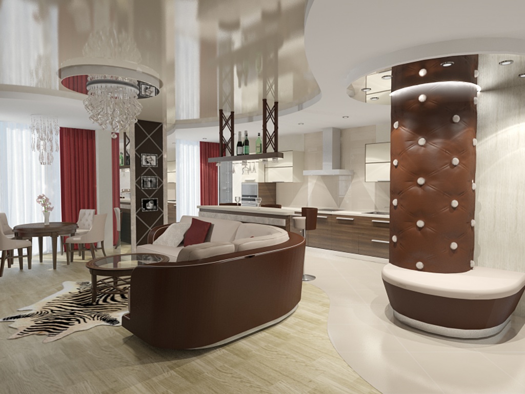 A stylish solution that saves space will be sliding doors, arches, wardrobes.