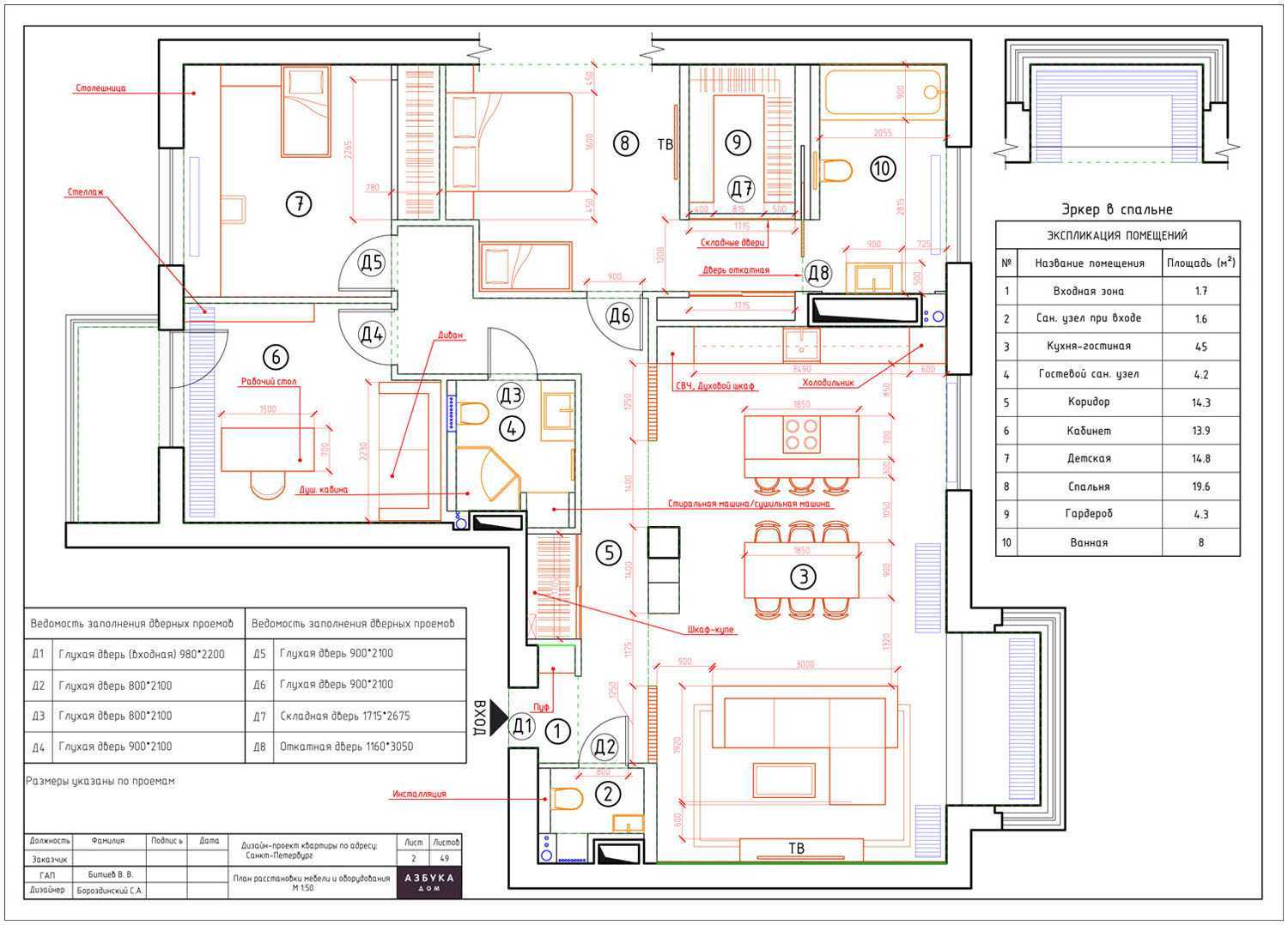 The width and height of the passage should correspond to the dimensions of the person. Contrast the colors in the decoration and correctly set the light to highlight individual zones in the room. Ease of use of furniture will ensure the absence of a large number of sharp corners and correctly opening doors. Organize the space according to your preferences and feelings. For example, if you are uncomfortable sitting with your back to the door, then do not put the workplace near the wall.
