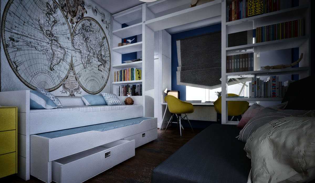 Allocate a key place for a bed. It is better to place her head on the wall. From the sleeping bed you need to open a review of the door and window. The height and length of the bed should correspond to the size of the person and the required number of beds. Buy beds without sharp corners and with a closed bottom that fits snugly to the floor so that dust does not settle in hard-to-reach areas. To save space, install a bed with built-in functional bedding drawers and bed covers, but do not mount shelves with sharp corners above your head.