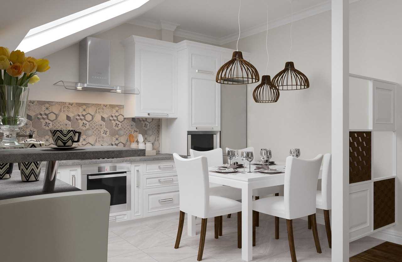 The ergonomics of the dining room and kitchen require sufficient space for a full dining table (60 cm for each person) and comfortable movement. The premises are necessarily equipped with a refrigerator, stove, sink and drawers for storing utensils. The walls of the room are painted in tones that promote appetite. The ceiling height allows you to set the general light, and additional bulbs are arranged above the working surface. The floor is tiled and practical details are used for interior design.