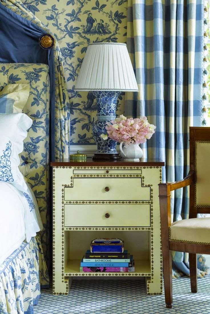 White and blue checkered or striped curtains, a bouquet of forget-me-nots will complete the stylization.