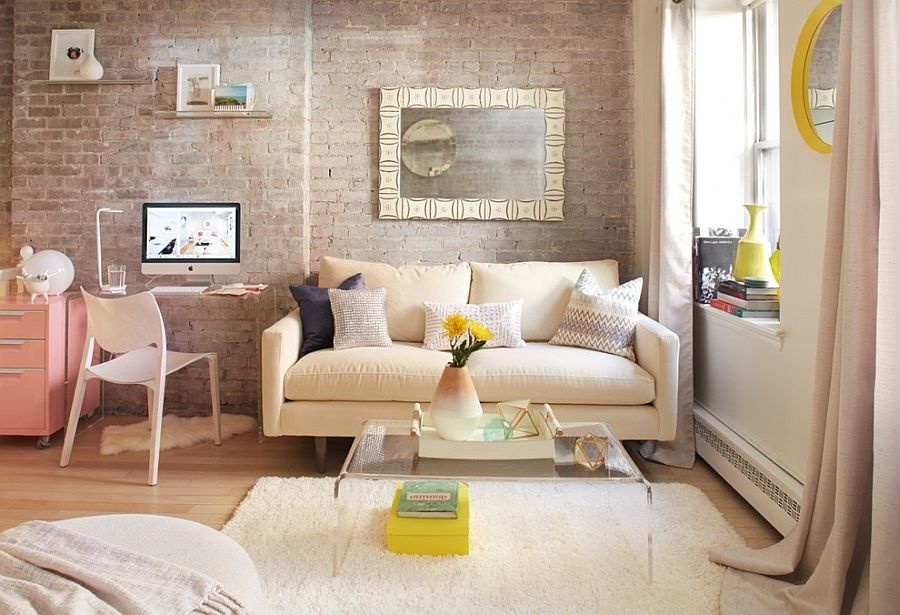 In confined spaces, small poufs can easily replace bulky chairs