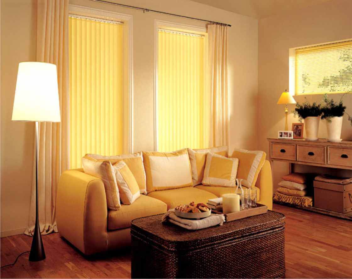 Blinds harmoniously look not only in restrained styles. Even in a cozy room of delicate shades, they perfectly complement the interior