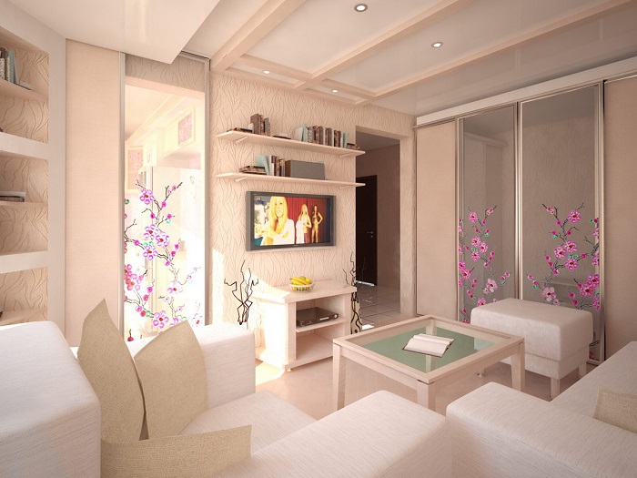 Competent layout. The proper arrangement of furniture and other elements are of great importance. The main thing is not to clutter up the space with unnecessary details.