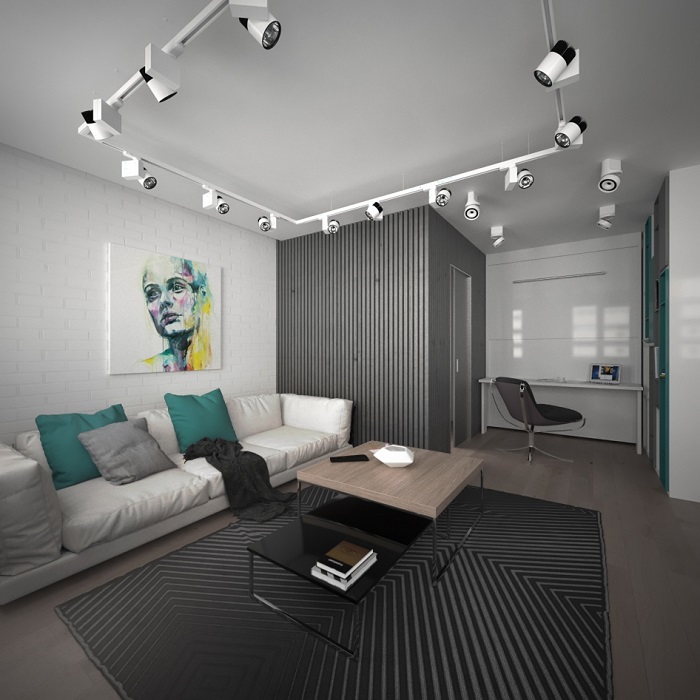 That's ready design of a small living room in the modern direction. Add a few elements to it that accentuate your personality, and room will become a true reflection of your inner world.