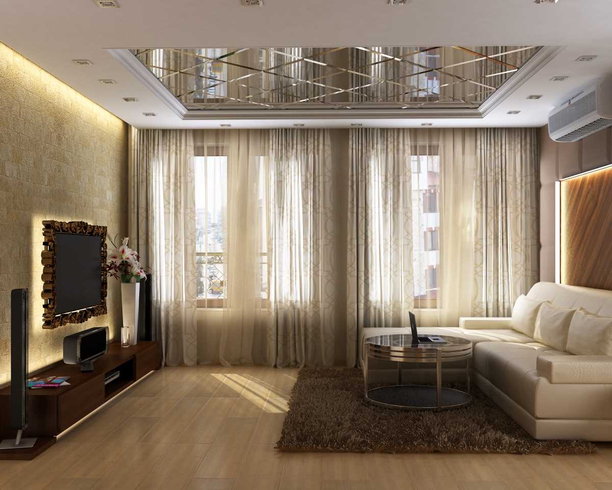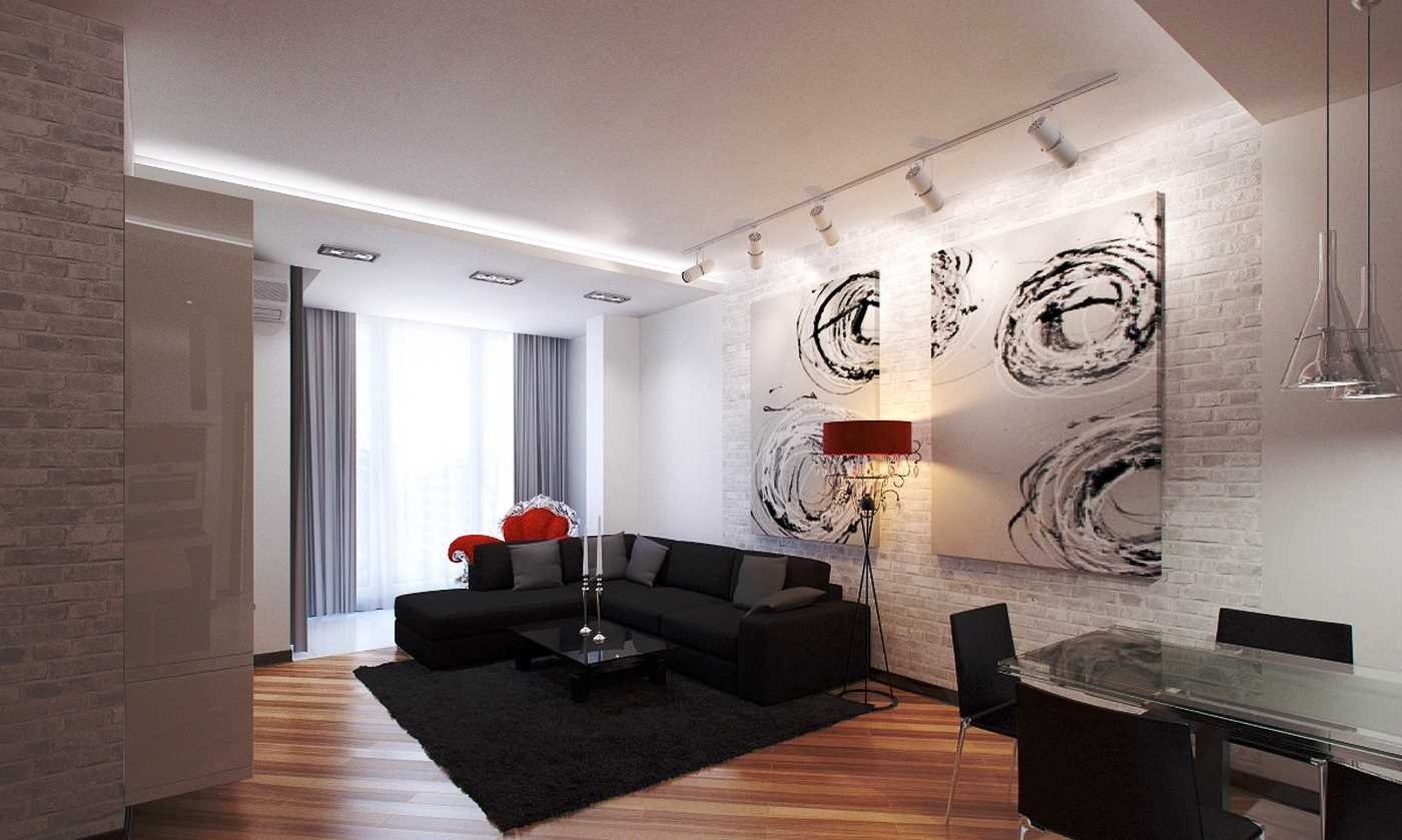 It remains to choose a sofa, and pick up the curtains. It is better to give preference to dark and dense material, so that during the daytime tightly close the windows during viewing.