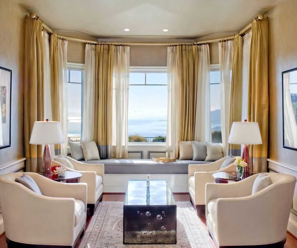 Using a bay window in a living room interior