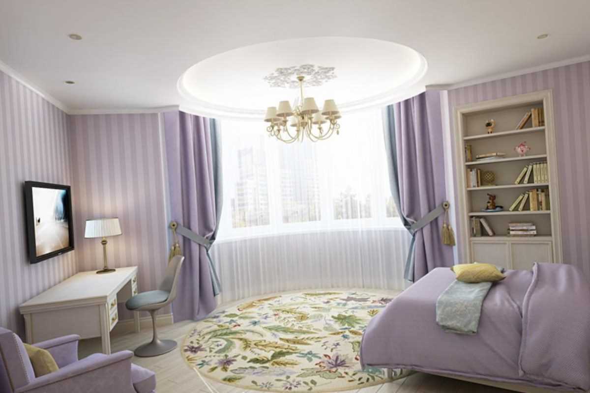 The room with a bay window looks very unusual due to the non-standard shape