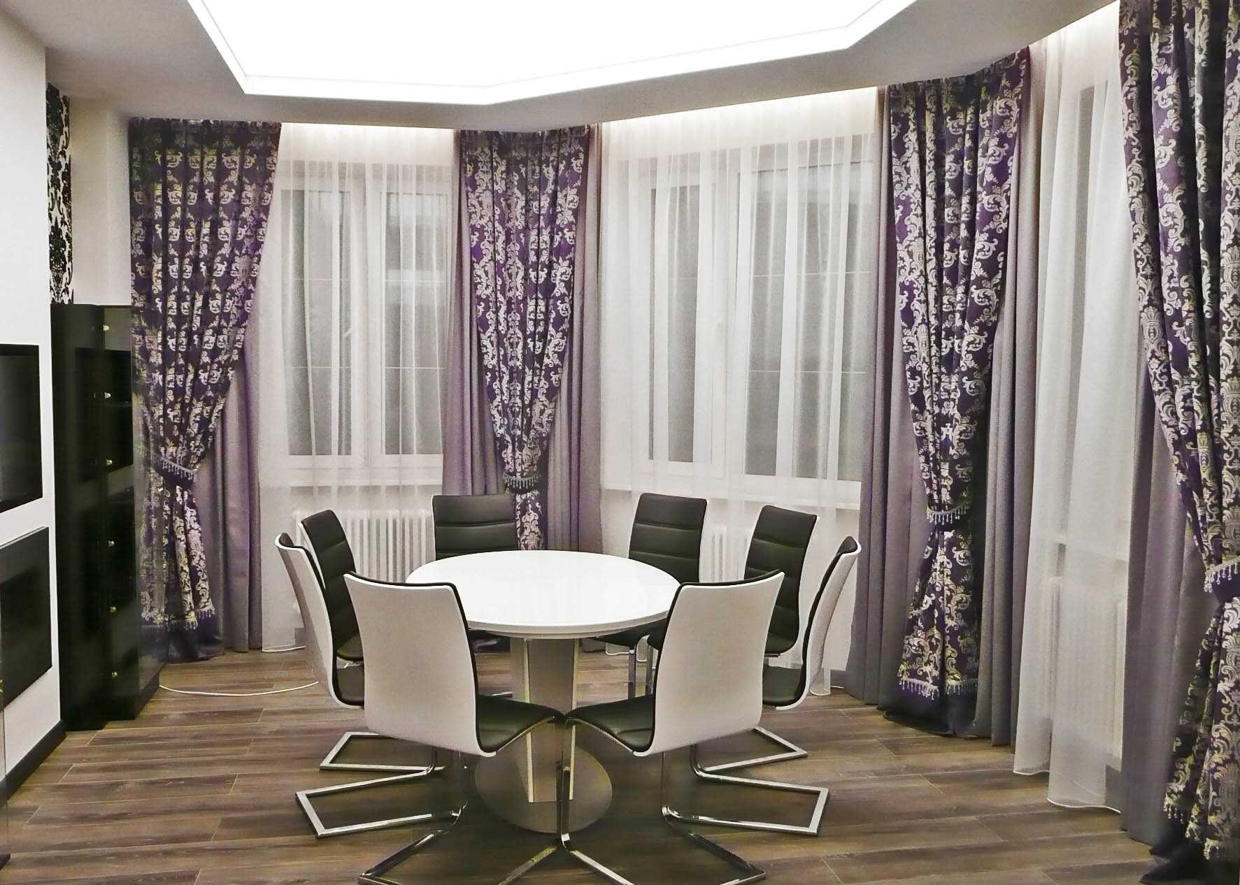 A good addition to the living room is the dining area. Not in every room you can allocate enough free space to use it as a dining room. The presence of a bay window in the interior of the living room will be an excellent option for creating a dining room.