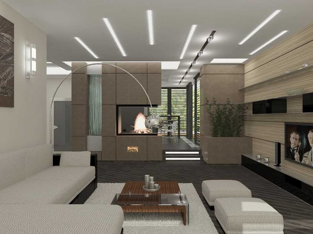 The fireplace in the living room in the style of minimalism will perfectly complement the overall interior