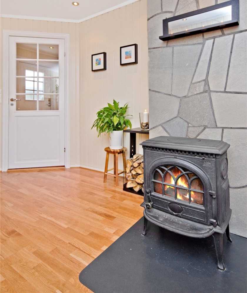 To highlight a fireplace, it can be overlaid with a decorative stone