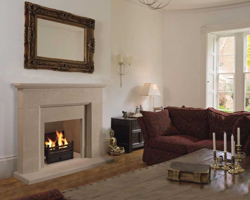 - Classic. Restraint or flashy luxury. Facade of a fireplace made of wood or stone. Extra decor is missing. Place a mirror, painting, or lamp above the product.
