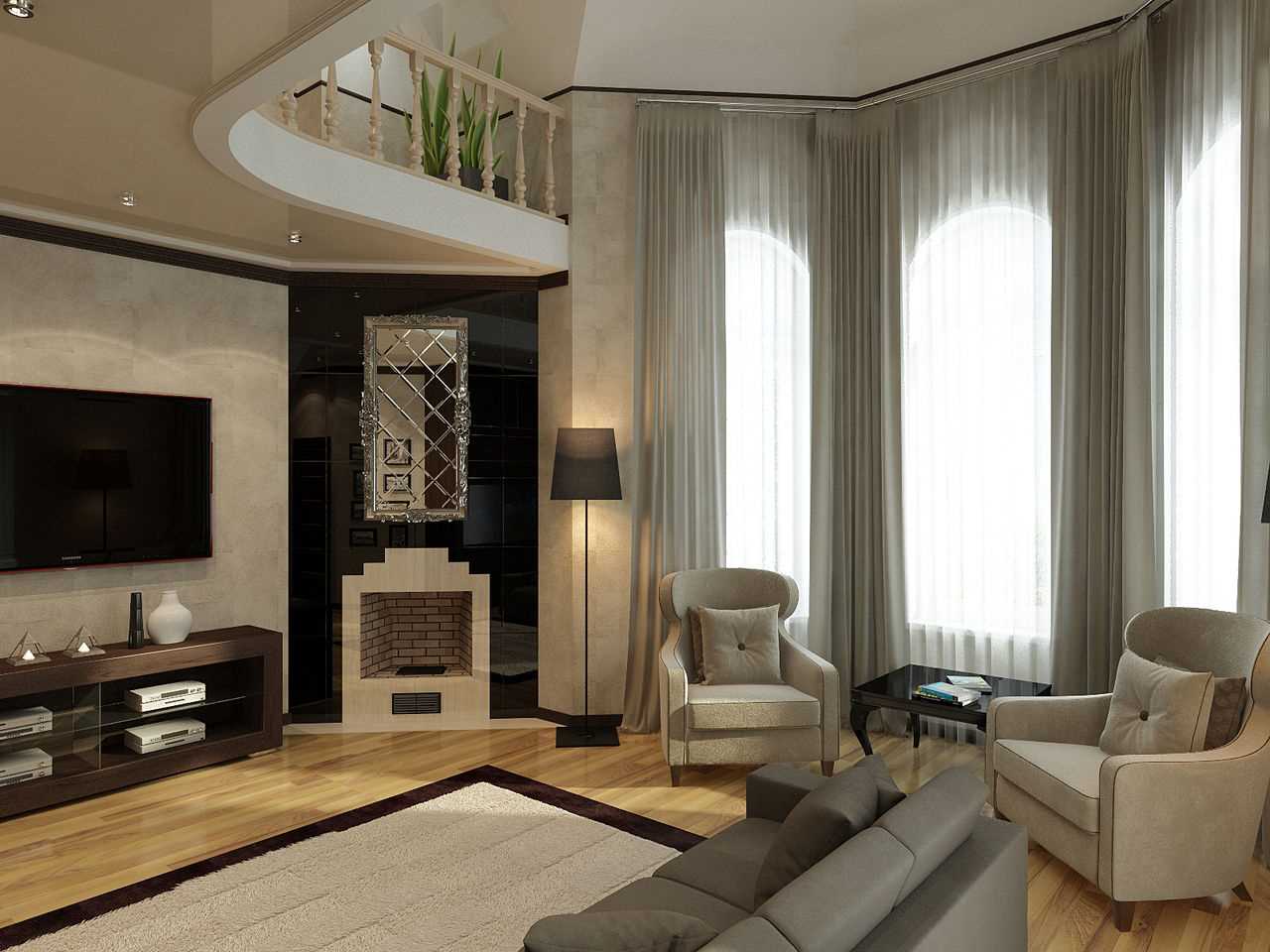 It is suitable not only for a huge private house. A small room in the apartment equipped with this detail looks no less comfortable and beautiful. It is important to carefully select furniture and decor elements. It is recommended to leave as much free space as possible.An excellent solution would be a false fireplace, which allows you to not take into account the height of the ceilings. Used for rooms of various sizes. Choose corner models to save space.