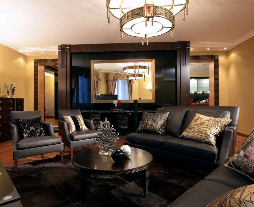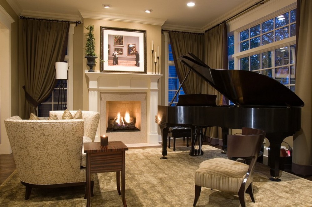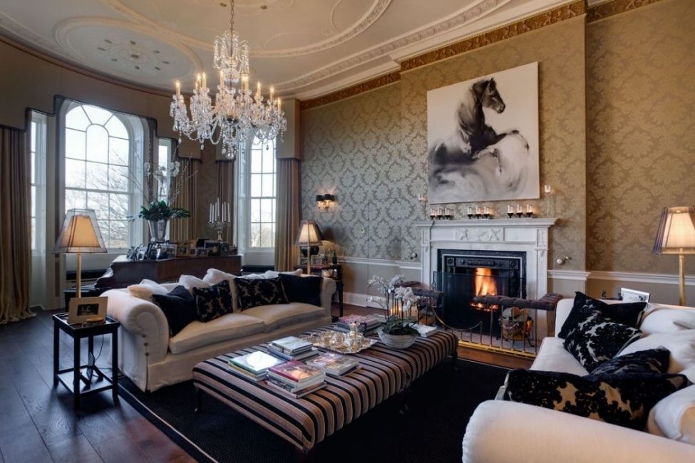 Every piece of decoration and decoration should emphasize luxury. Real or fake fireplace with decorative stucco, classic paintings in gilded frames. Textiles for furniture and curtains necessarily made of noble fabrics: velvet and satin for curtains; Jacquard, velor, brocade for upholstery.
