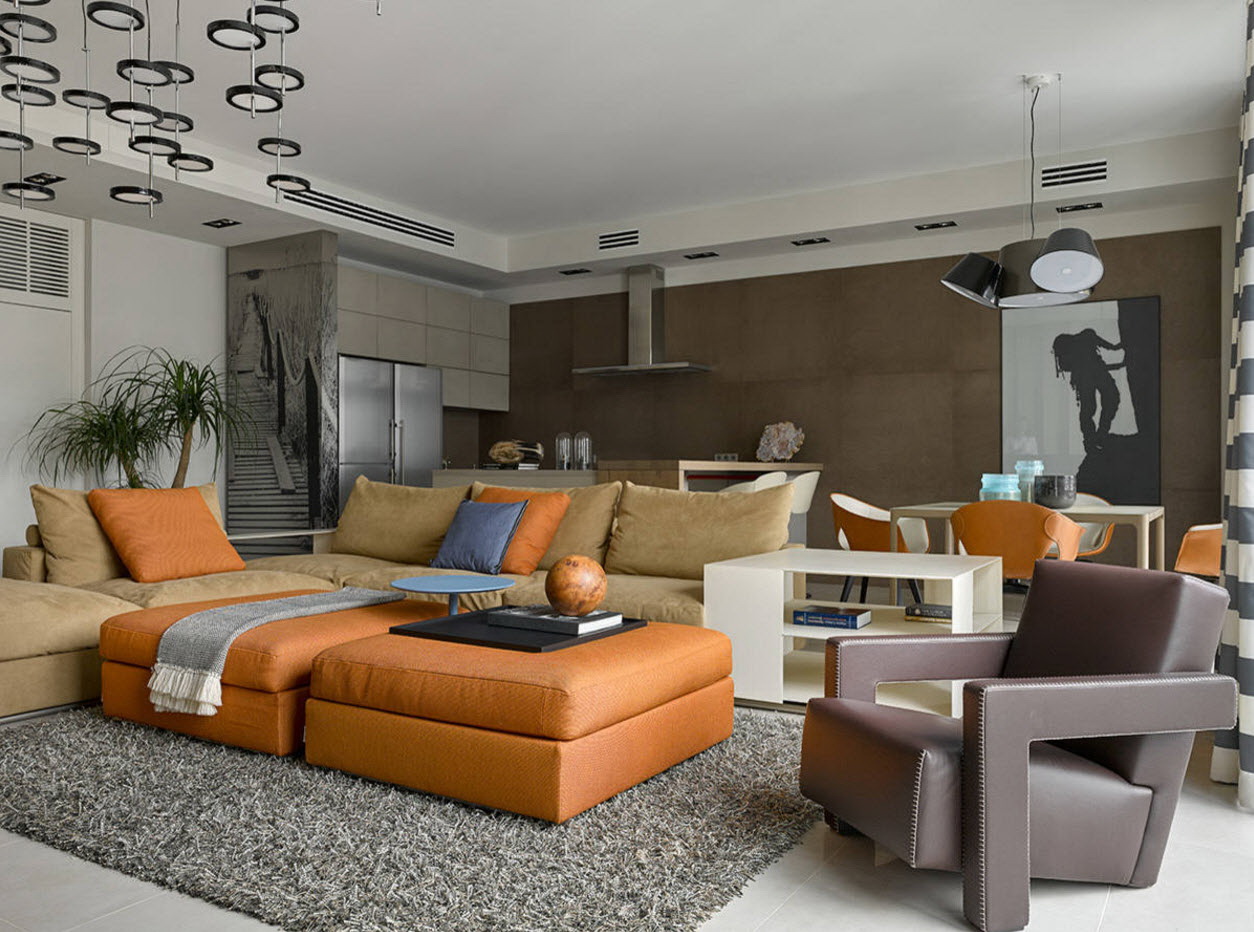 A variety of directions allows you to get a design for every taste. For a small room, minimalism is suitable, and for some advanced owners, high-tech. But the interior of the living room in an apartment with a large area or in your own house can be decorated in a classic and on a grand scale.