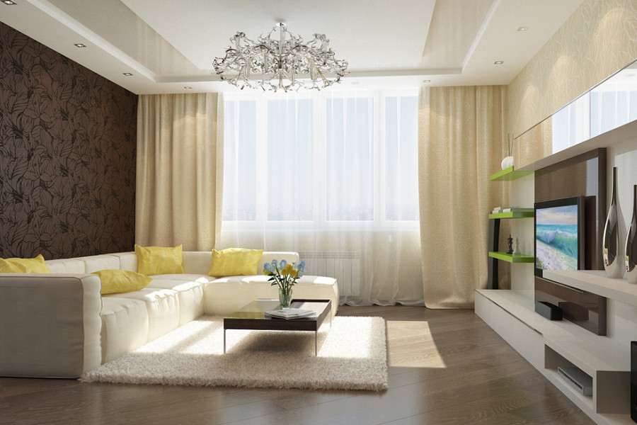 The living room is the most public place of the remaining rooms, its design is designed to show the preferences of the owners, as well as impress the guests. Therefore, the choice of interior design of the hall requires special attention. The design should carry both a functional and aesthetic component, help relax after a working day with your family or receive guests. A correctly selected version of the interior of the hall in the apartment will help highlight the advantages and hide the imperfections of the room.