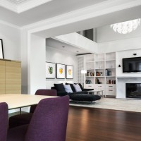 A spacious living room in a full-length apartment involves the installation of a large-sized electric fireplace with a massive portal. It can be built-in, recessed or wall-mounted models depending on the style of room design. Installation of the hearth and design of the frame is easy to do with your own hands.