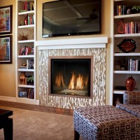 - Island or freestanding. The lack of a portal makes it possible to observe the flame from three sides.