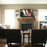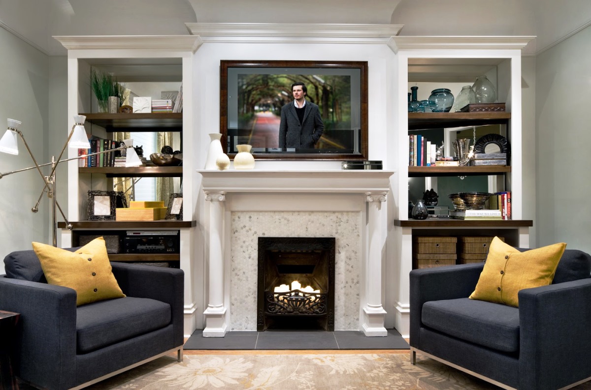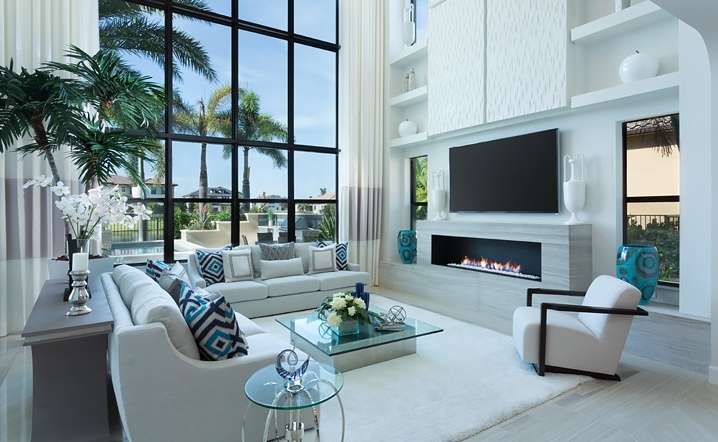 The color of the portal and decorative frames should contrast with the decoration of the walls and be combined with elements of the living room decor.