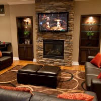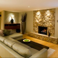 The style of rustic, provence, country in the design of the living room is emphasized by a small or medium fireplace with a D-shaped portal. The main goal of this direction is to create a comfortable environment in combination with functional naturalness. A wall, corner or buried hearth is made up of an untreated tree, sandstone, shell rock. To facilitate the work using false panels that mimic natural materials.