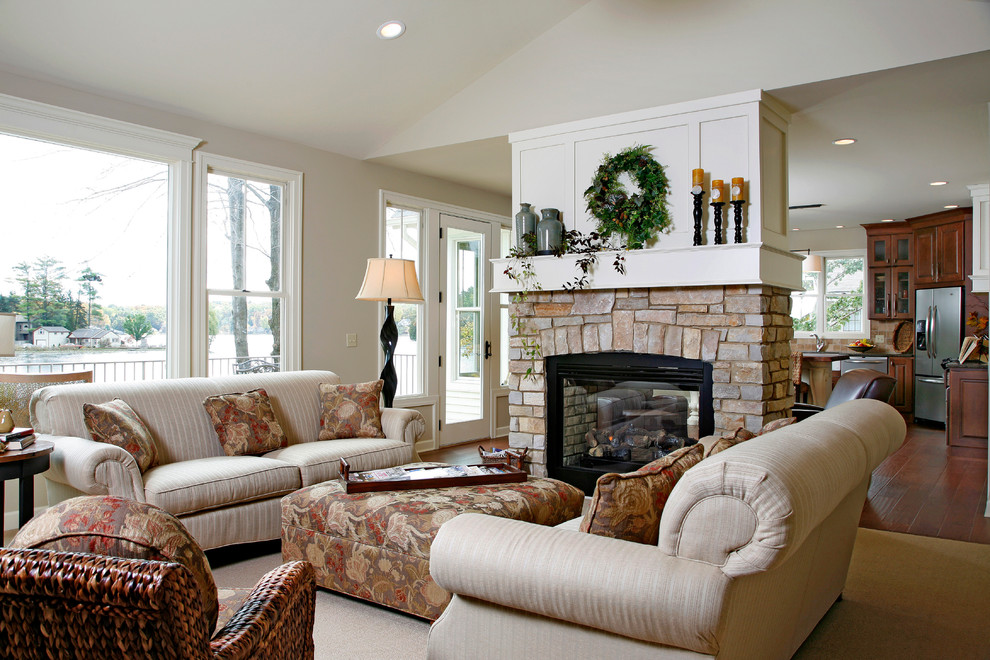 The place of installation of the fireplace in the interior depends on the area of the living room, the location of the entrance, the size and direction of the window openings, the style of interior decoration.