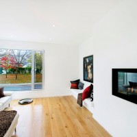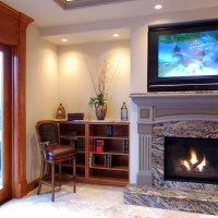Mounting the hearth into the wall will not be difficult if you cut down a niche in the partition and bring the wiring. The minimum thickness of modern models does not require large labor costs during installation. Niches are framed by metal or wooden platbands, depending on the style of the living room.