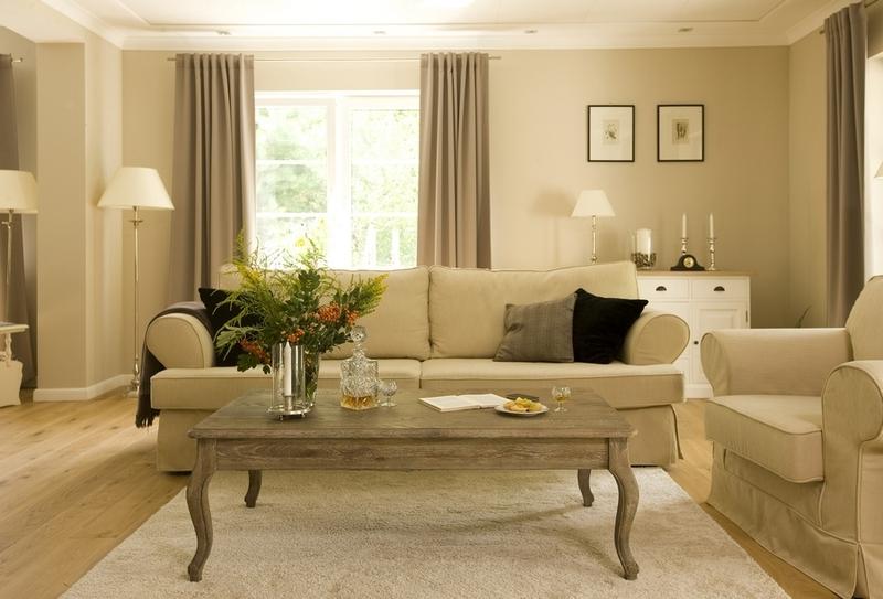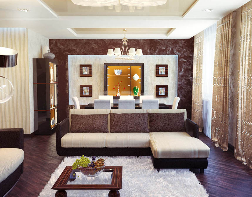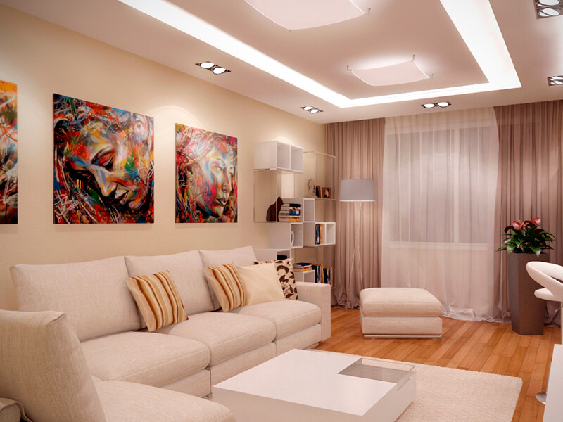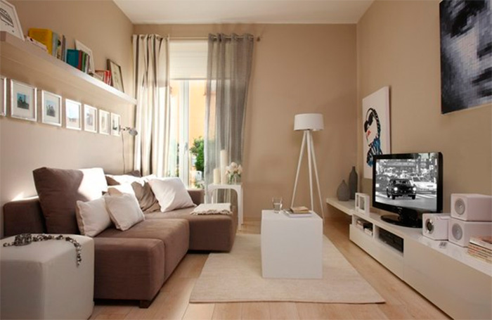 Beige color contributes to a visual increase in the size of the living room