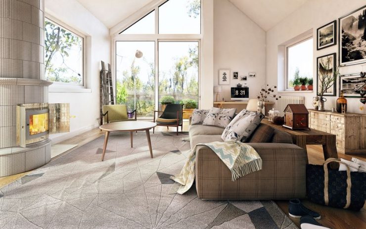 Solid beige interior can be diluted with bright accessories