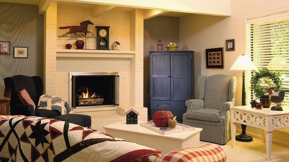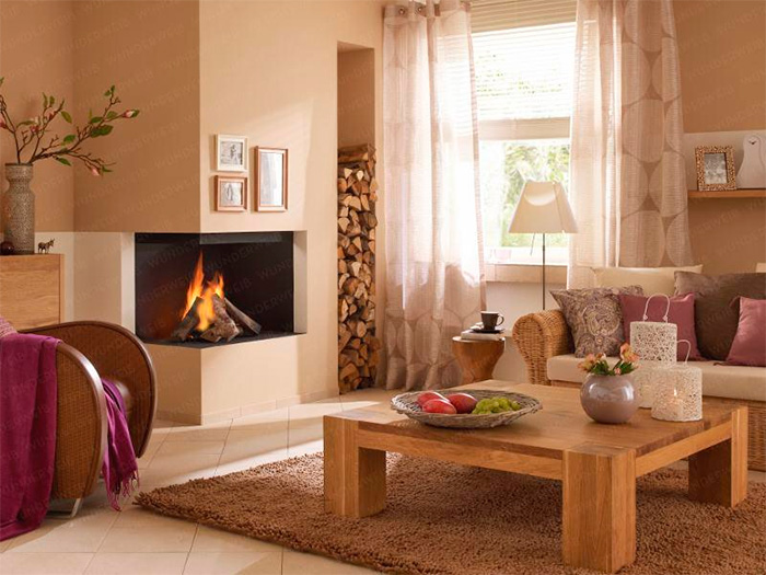 In the modern style living room, a fireplace is quite appropriate