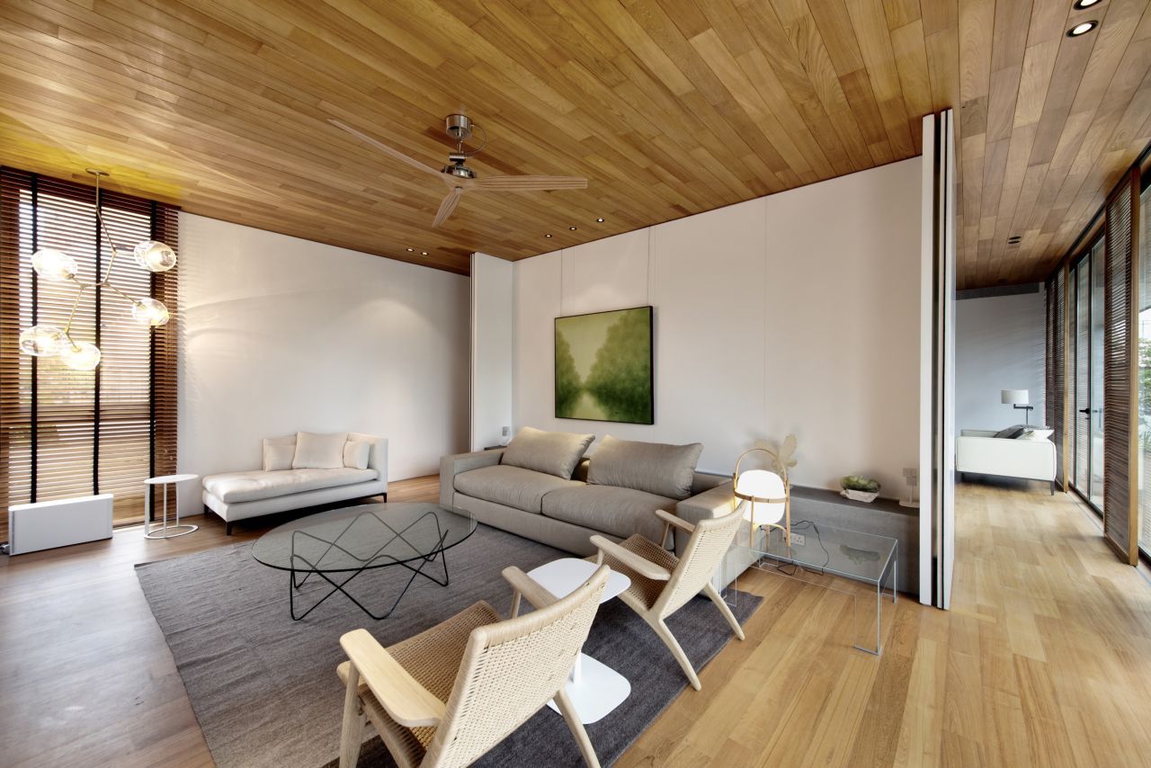 Provides for the exit of window openings to a private lawn. Green grass will be a great addition to the interior of the living room.