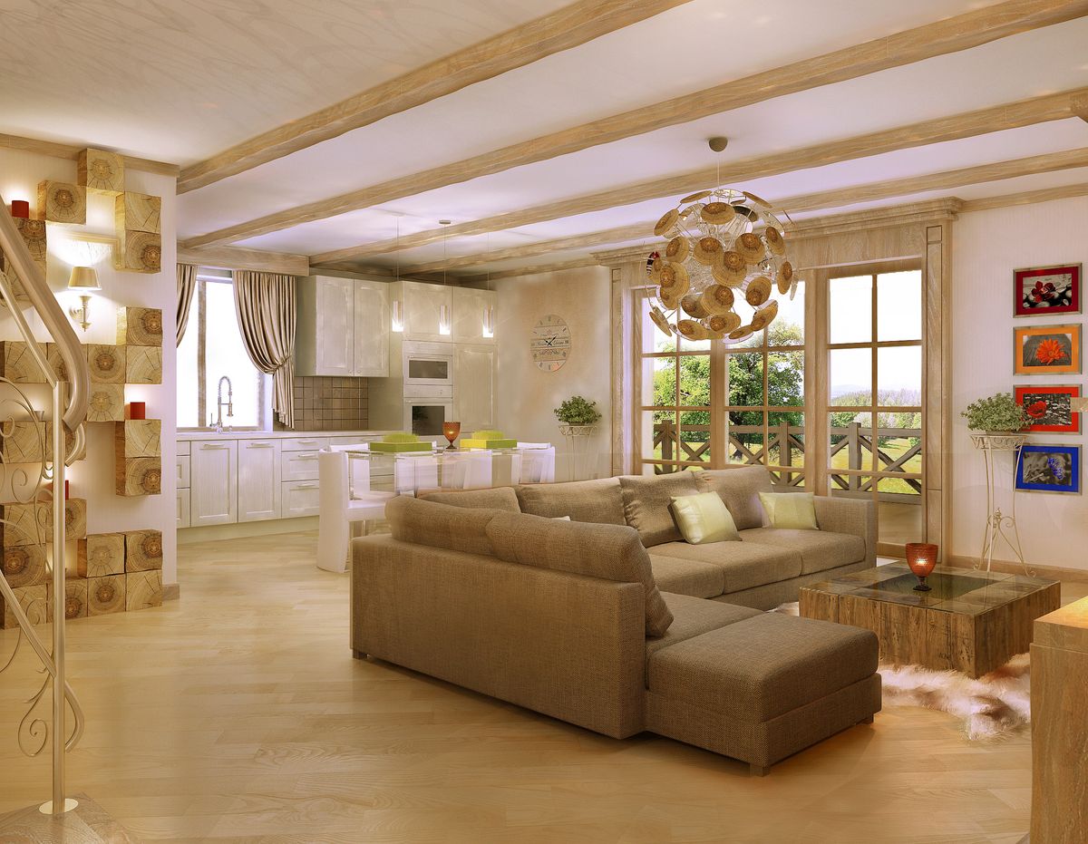 People living in city apartments do not understand the charm of being in a country house. But it is here that you can have a good rest from the worldly bustle. Spacious cottages, filled with light and clean air, are being built in order to delight their inhabitants day after day. People like to get together with a large circle of friends. To do this, they build large halls for guests. The harmoniously created interior of the living room in a private house can many times brighten up your stay and communication.