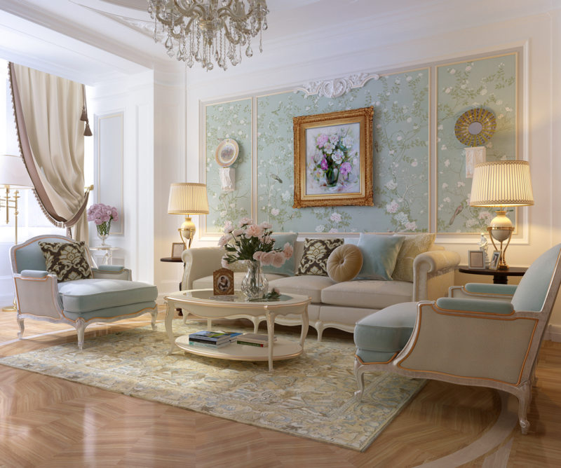 The calm color palette is the best suited for creating a cozy and comfortable atmosphere of the living room