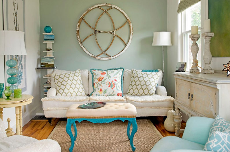 This direction is suitable for lovers of quiet, calm evenings. It will provide an opportunity to create a soft and comfortable atmosphere. Much attention is paid to furniture and textiles. Large soft sofas and armchairs with plenty of pillows. Long draped curtains and soft carpets on the floor. Provence is the embodiment of a cosiness of warmth and luxury.