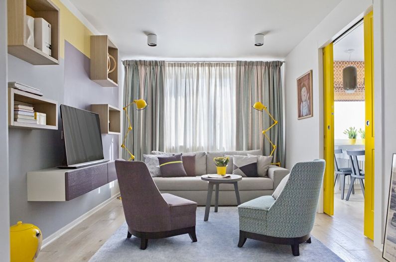 | Functionality | Combined with a study; With a nursery; With a kitchen; Living room in a studio apartment. |
