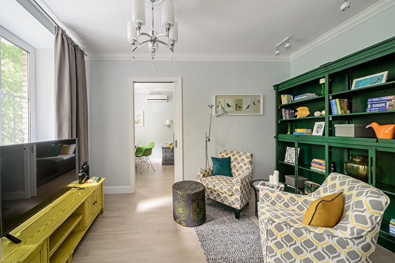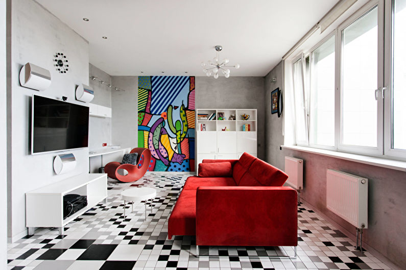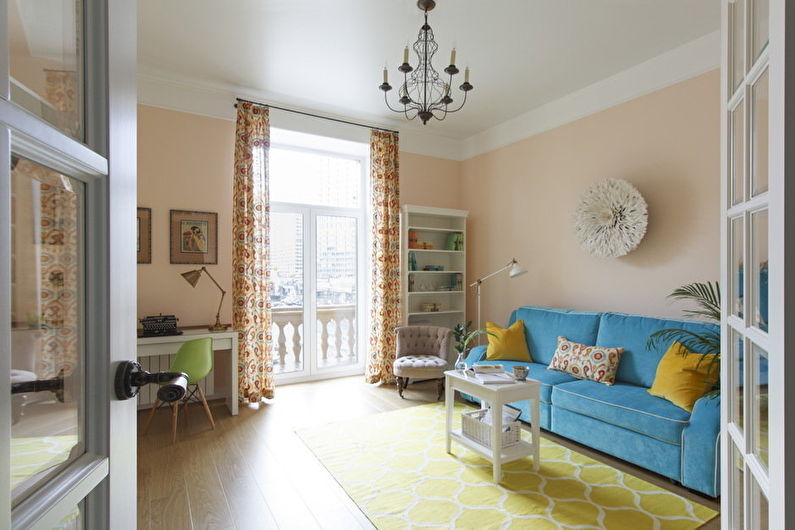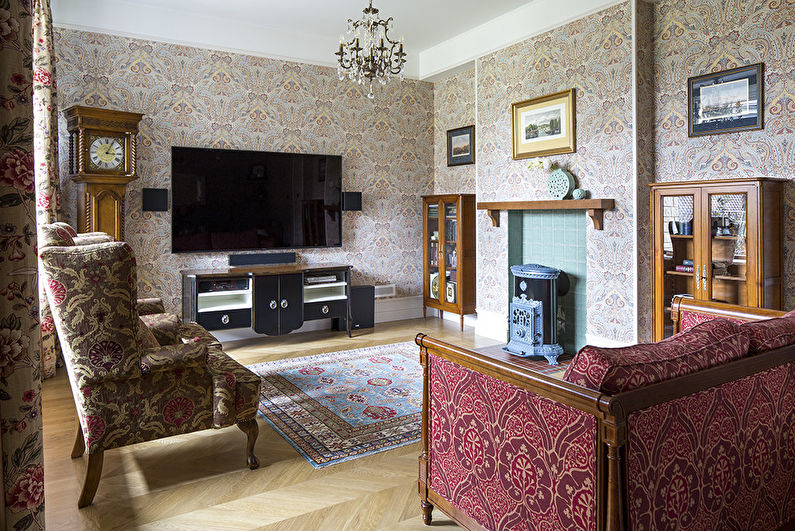 In this case, any design of the living room is suitable. The main thing is that it looks harmonious, and creates a full-fledged picture.