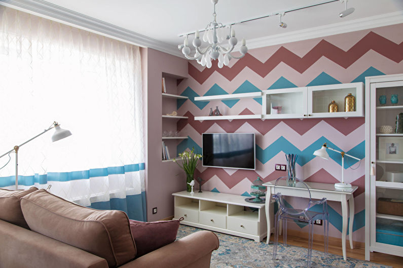 The modern interior is moving away from the usual wallpaper. The most common way to design walls is painting. Most modern styles accept only plainly painted walls. If you do not like monochromy, choose a painting. It can be created using paints and brushes, spray paint or stencils.