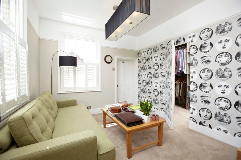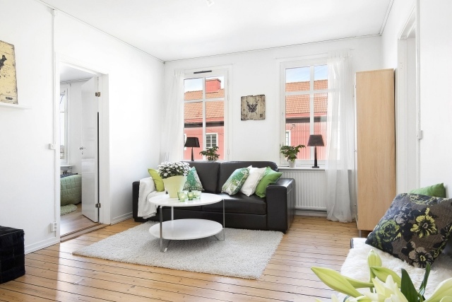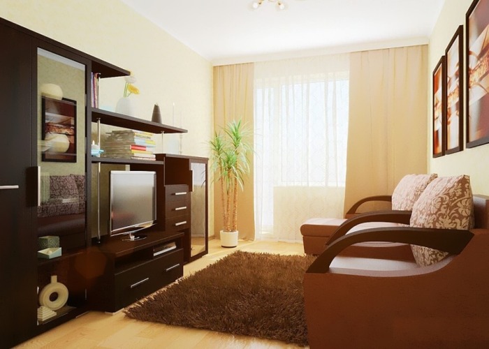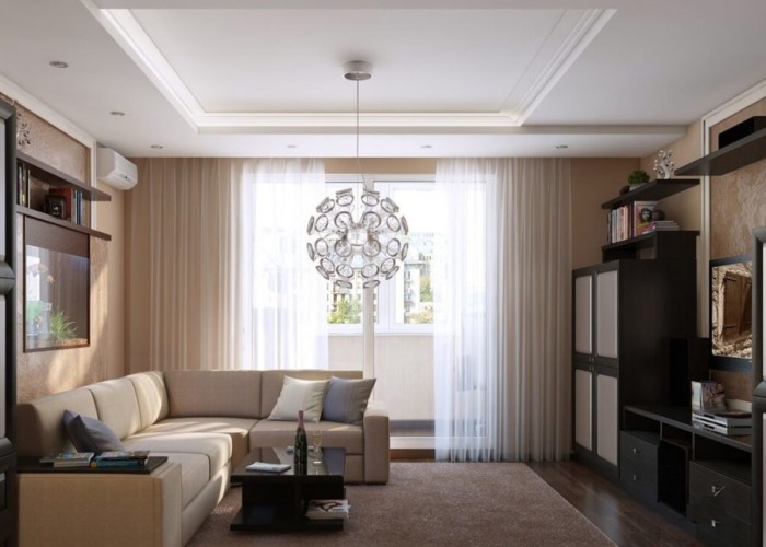 Combine the two directions described above, will help modern - calm tone wallpaper, bright elements of decor, adequate lighting. Chandeliers of unusual shapes look good, their creative options. Furniture practical, comfortable to sit on. Recently, more and more often when arranging small rooms use original ottomans instead of chairs. They provide a place where you can put anything you want.