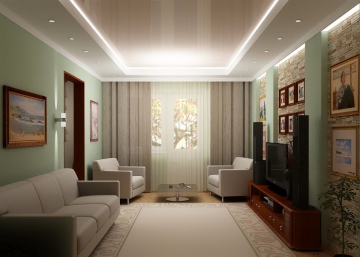 Ceiling located at the top, but, despite this, plays an important role in general androom interior. Therefore, its design should not be neglected. If everything is properly arranged, then he visually will make premise above. In small rooms it is necessary to choose the color of the floor lighter one tone than walls. It is inappropriate to use complex multi-level structures. They take precious centimeters, and the ceiling drops down, which does not affect the overall picture in the best way.