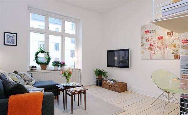 Ethnic style in a small room it will look interesting. It involves the use of various objects for decoration the interior. Figurines, handmade carpets, animal figures, natural flowers are well suited. They should be in moderation, since an excessive amount will make the room cluttered. If unusual furniture, then there should be several decorative elements.