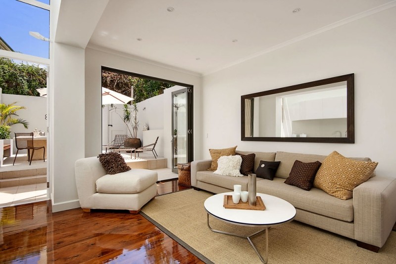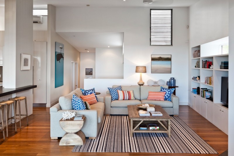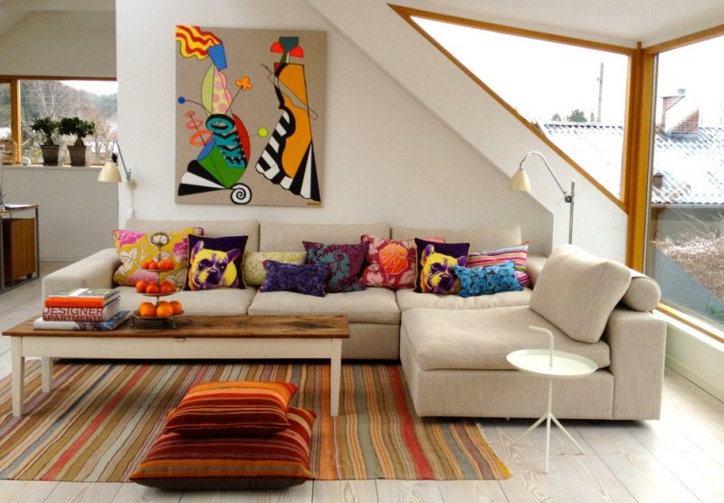 Make a choice in favor of some kind of color accent that will enliven the neutral color scheme of the whole room.