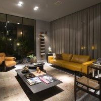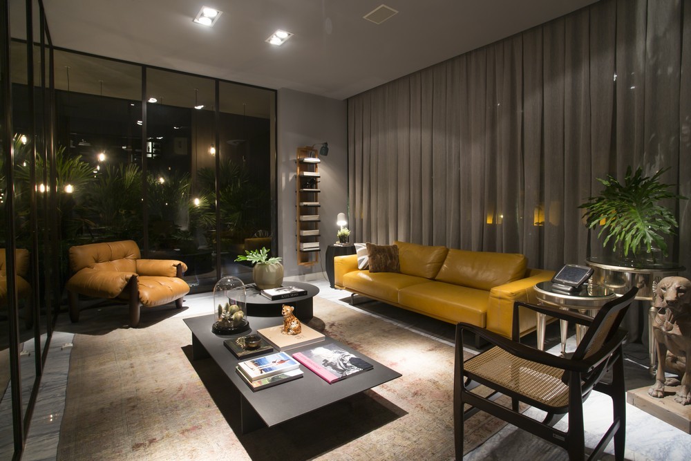 Designer living room is a room for which the same type of furniture is unacceptable. Everything is done differently here.Set up a place for a modern fan or bio-fireplace, next to which you will find an old rocking chair from the time of your grandmother. Place an old table in the middle of the room and modern high chairs near it.