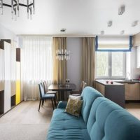 - Functional separation with furniture. This is the most common way to separate the cooking area from the living room. As a separator, a dining table with chairs, a spacious sofa or other furniture is used.