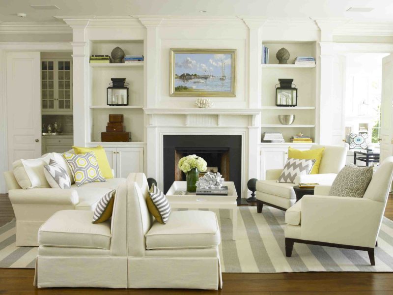 The colors and shades in which the room is decorated should overlap with each other. Suppose you choose upholstered furniture in a light green hue. So that it does not look foreign in the living room, pick up curtains for windows of the same color. Or decorate the room with light green tabletop vases and other interior details. But remember, everything must be in balance. Do not litter the room with a large number of accessories.
