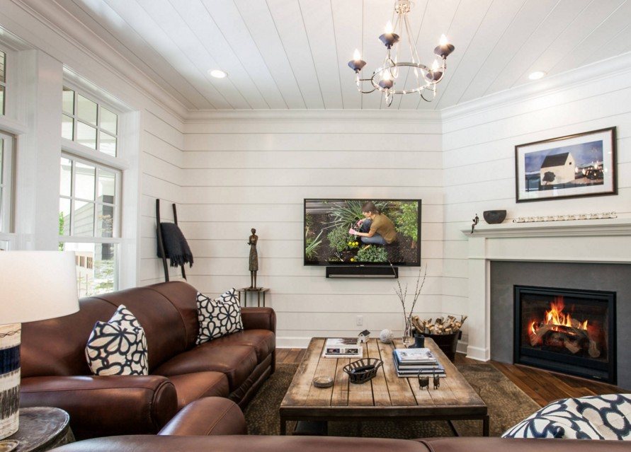 For finishing the ceiling of a small living room, plaster is suitable. But it does not have to be perfectly flat and smooth. Use a matte embossed composition with imitation of the texture of natural materials. To stylize the ceiling is widely used fashionable decor "art concrete". Give preference to warm and light shades. The right choice of ceiling color will visually enhance the room.