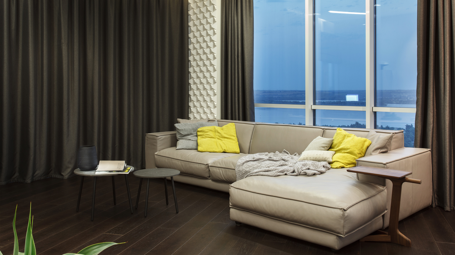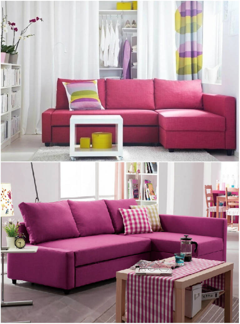 The choice of upholstery colors depends on the design of the room. Upholstery can stand out against a neutral background of the walls, in which case the sofa becomes a color accent. Bright colors will enliven the interior, but do not use saturated colors if they are already present as the main background.